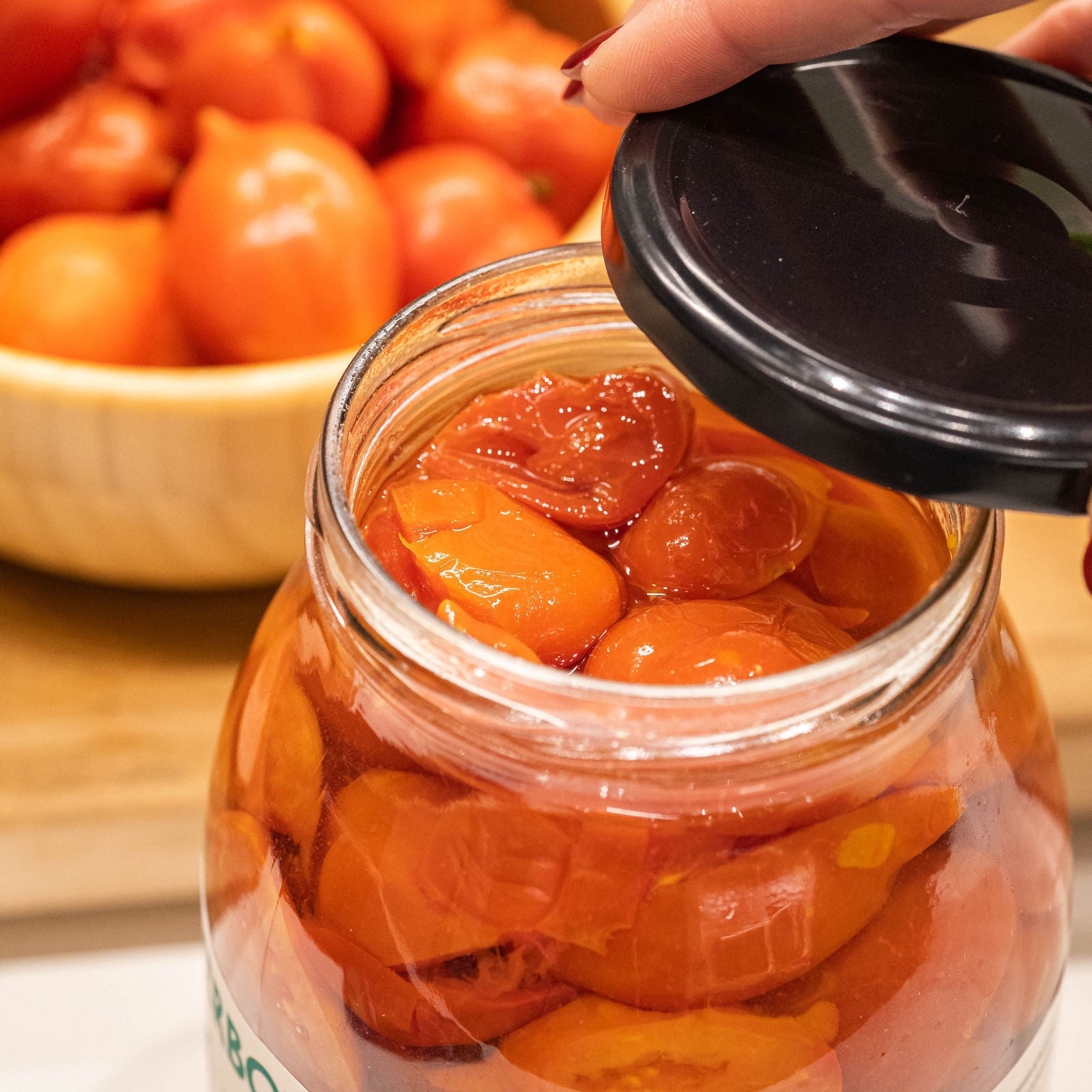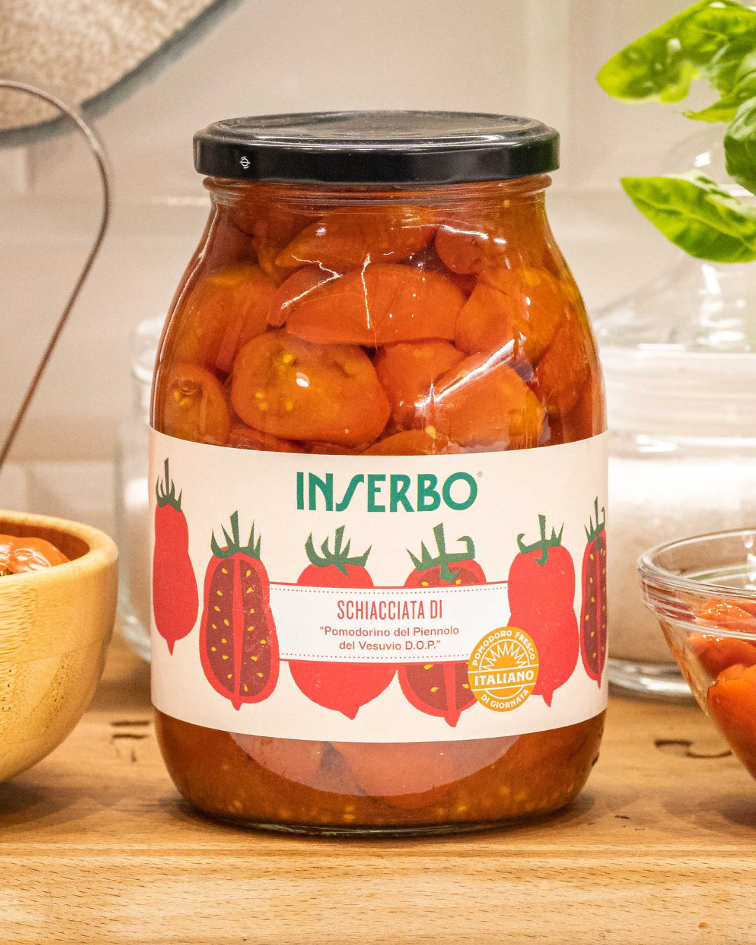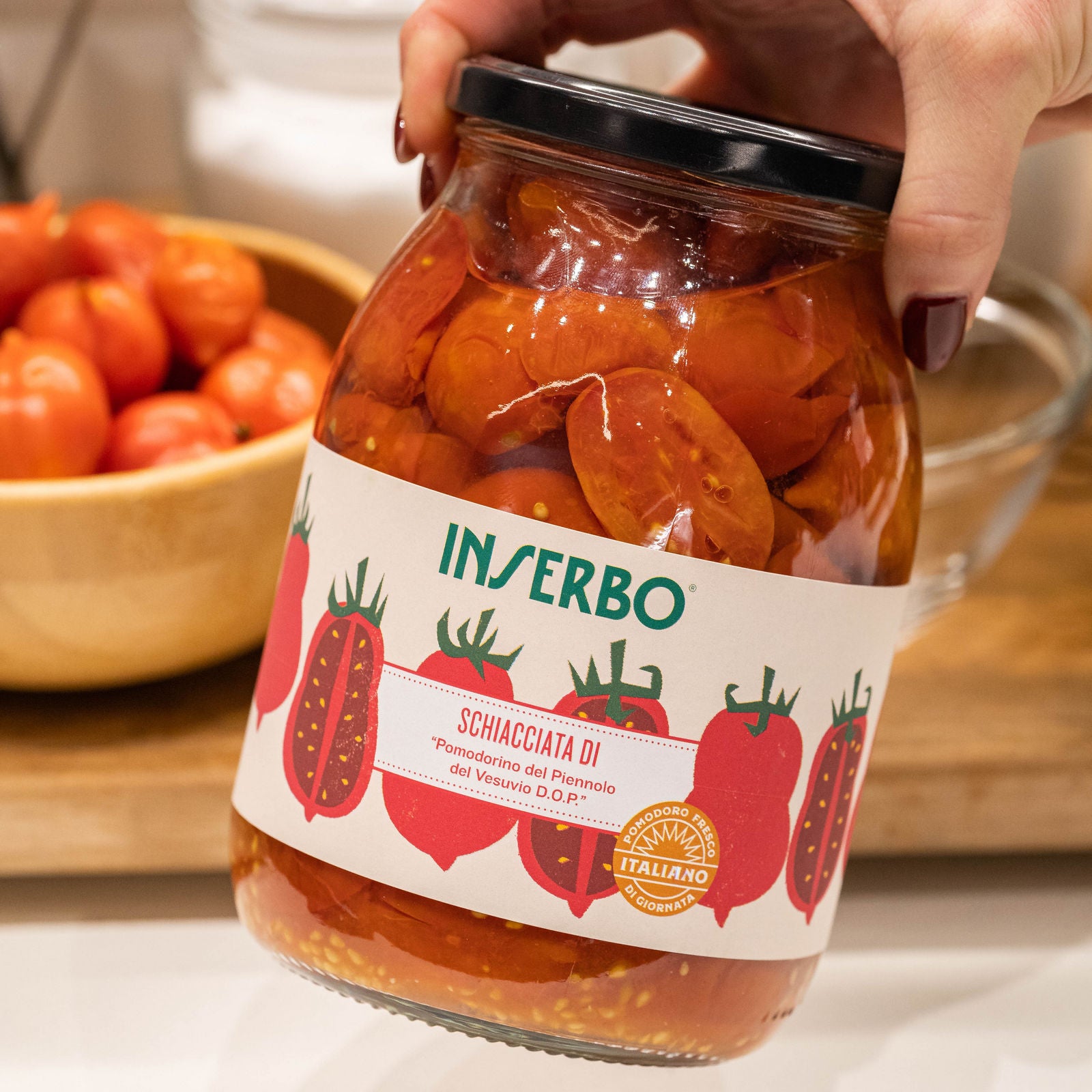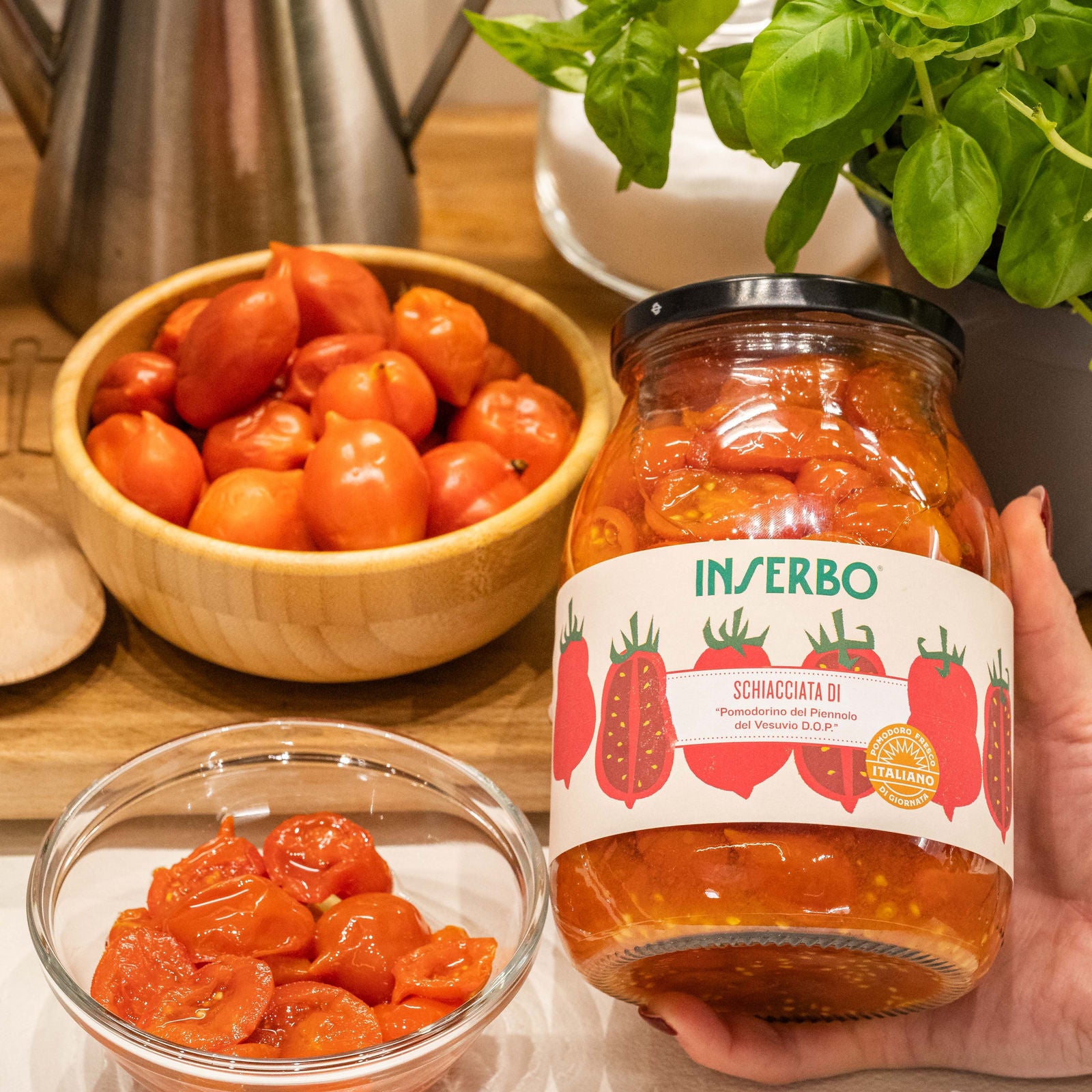 I pomodori del Piennolo del Vesuvio sono coltivati esclusivamente sulle pendici del Vesuvio, in un terreno ricco di minerali che conferisce loro un sapore unico e inconfondibile. Questi pomodorini, dalla forma piccola e allungata, sono famosi per la loro buccia spessa e il sapore dolce-acido, che li rende perfetti per la preparazione di sughi, conserve e altre specialità della cucina napoletana come la pacchetella del piennolo